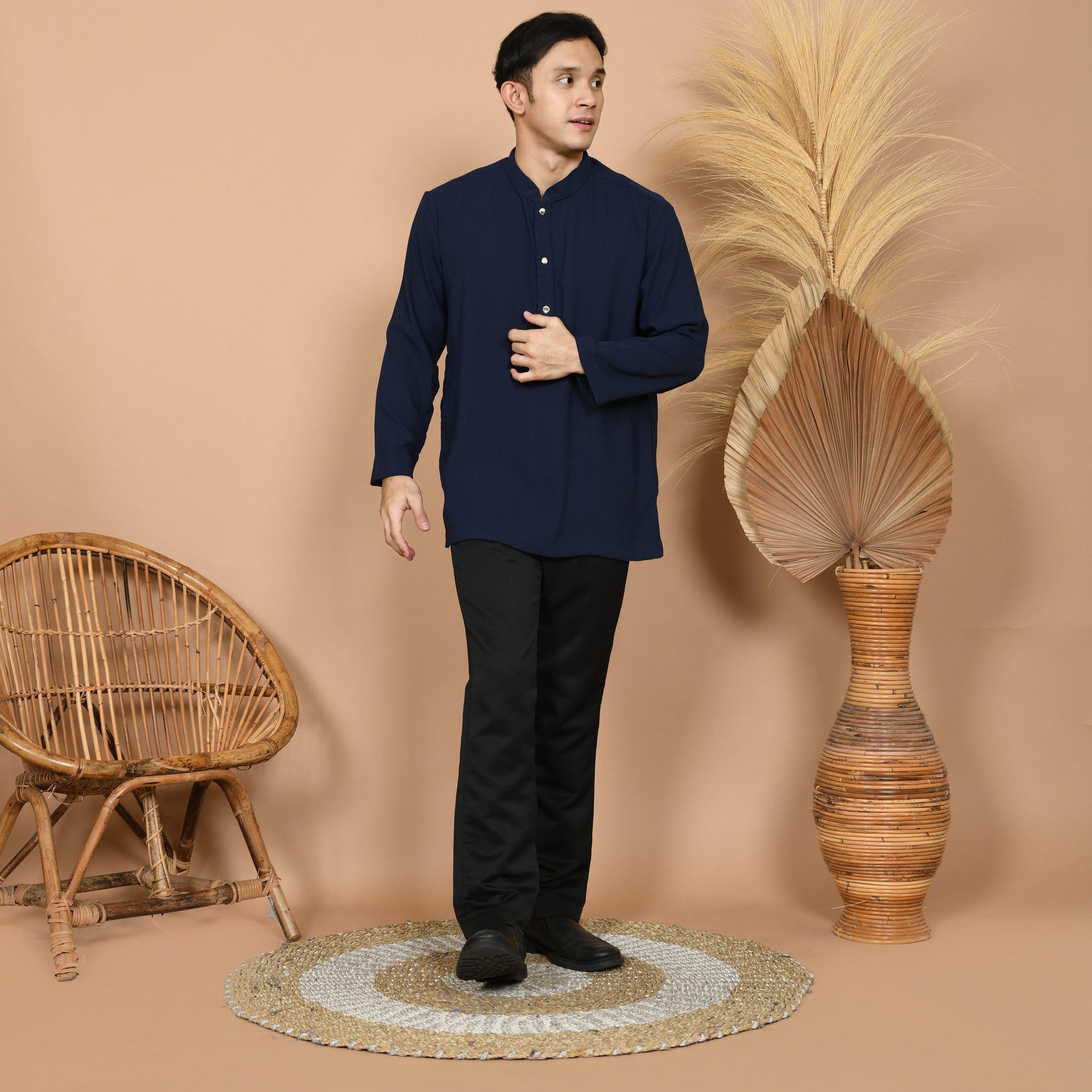 Modern Baju Melayu with mandarin collar & silver buttons. Pockets on both side of top. Measurements at last picture.