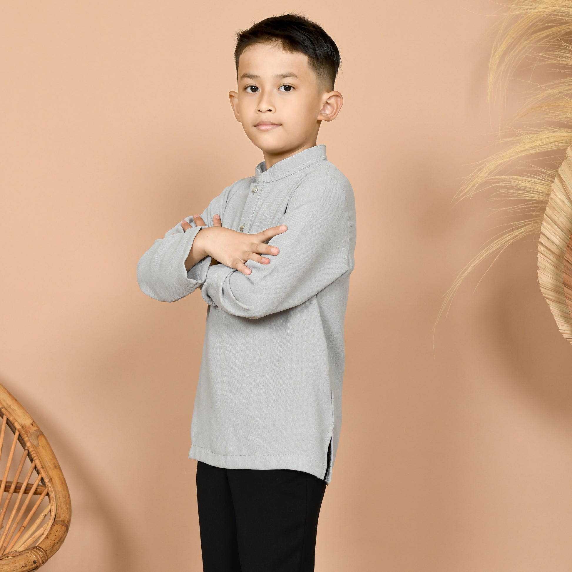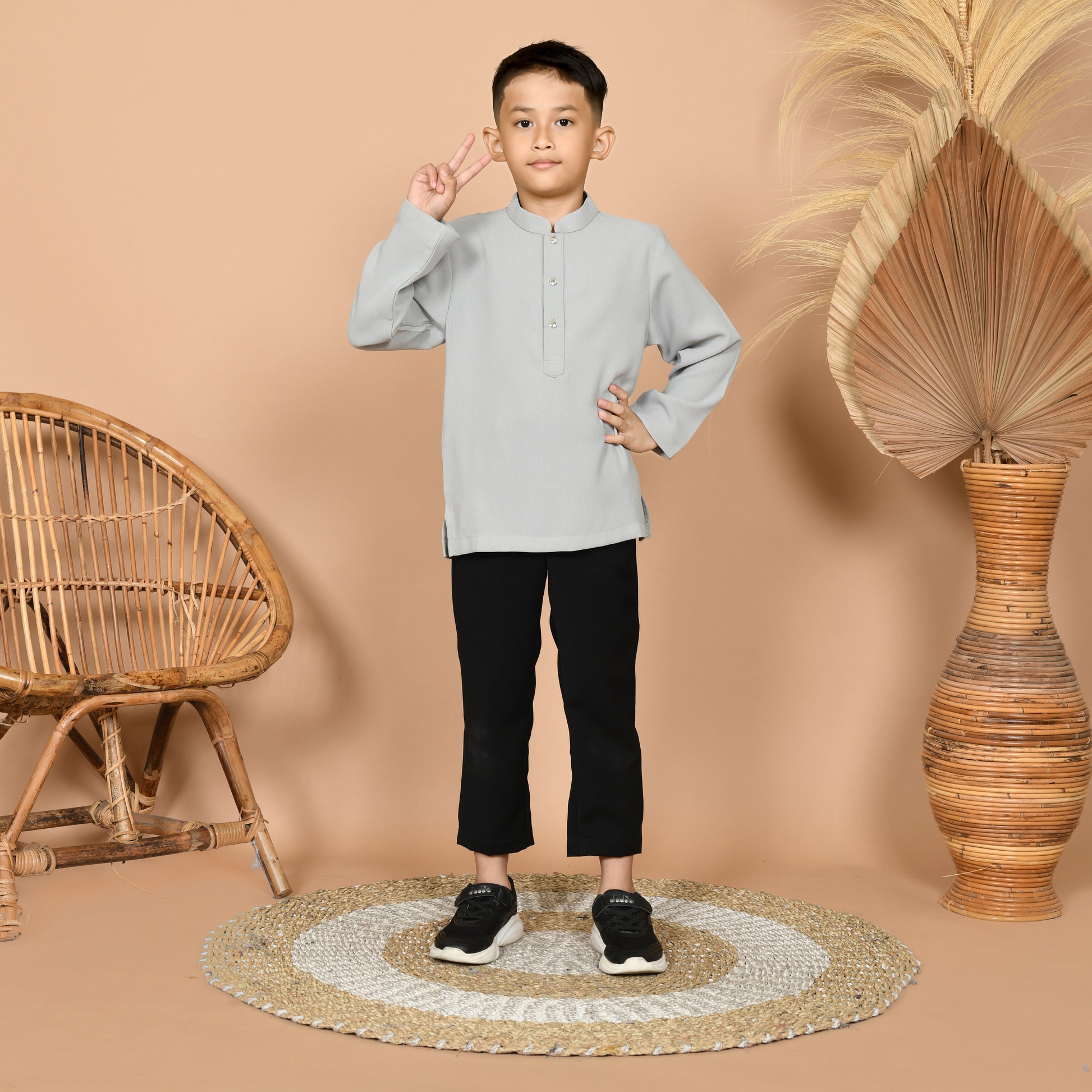 Modern Baju Melayu with mandarin collar & silver buttons. Pockets on both side of top (except Size 1). Measurements at last picture.