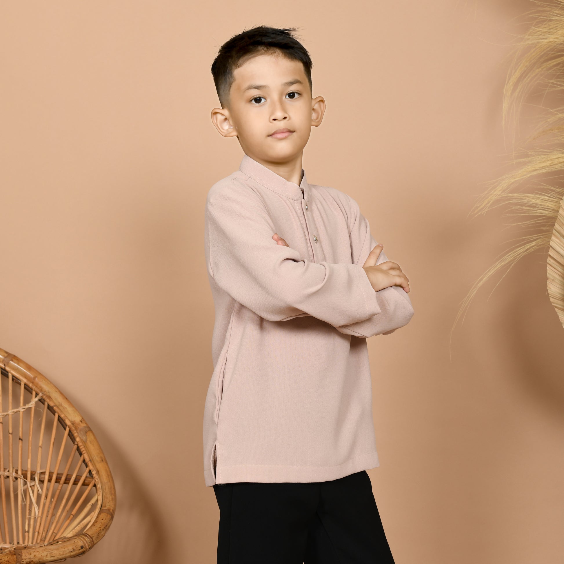 Modern Baju Melayu with mandarin collar & silver buttons. Pockets on both side of top (except Size 1). Measurements at last picture.