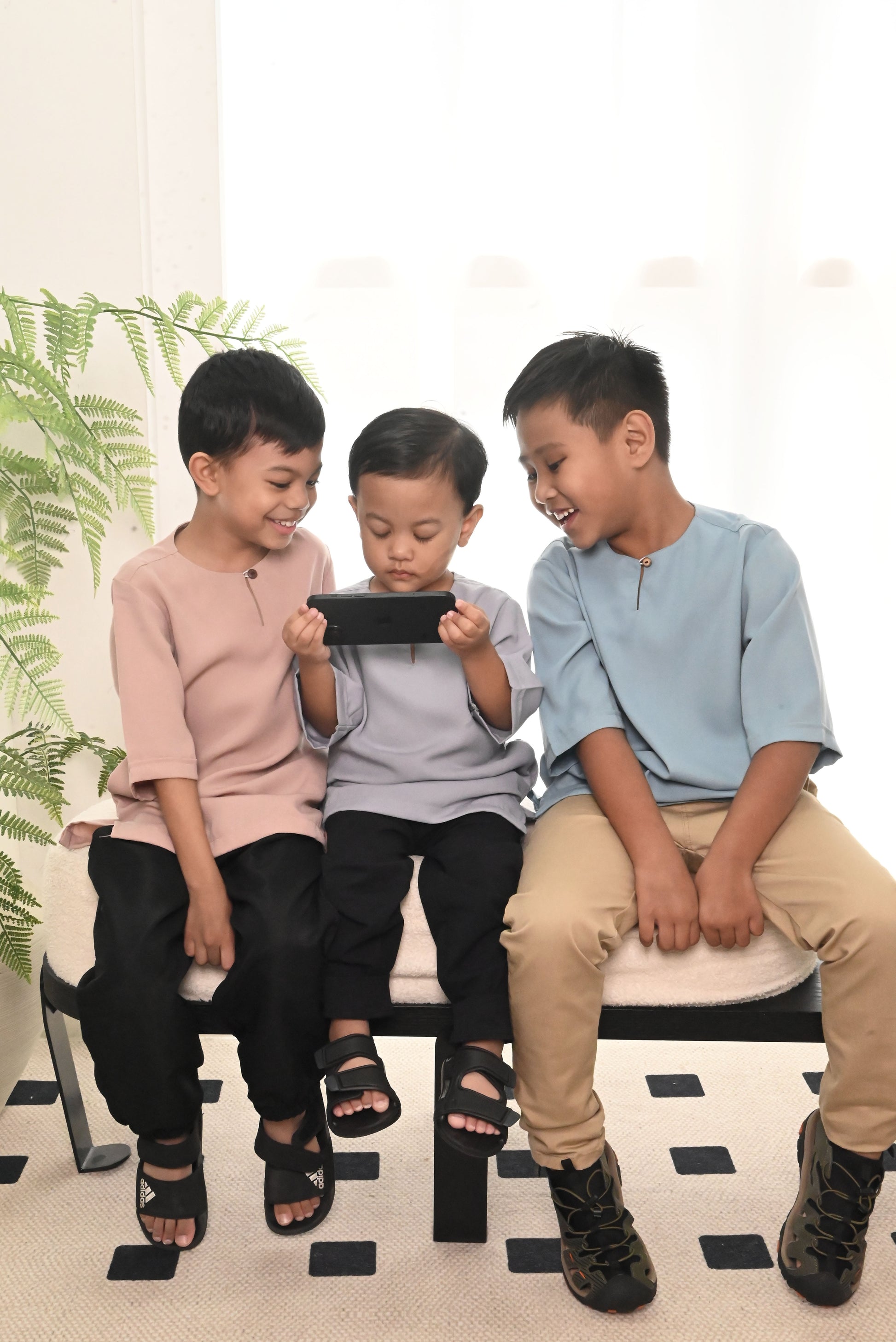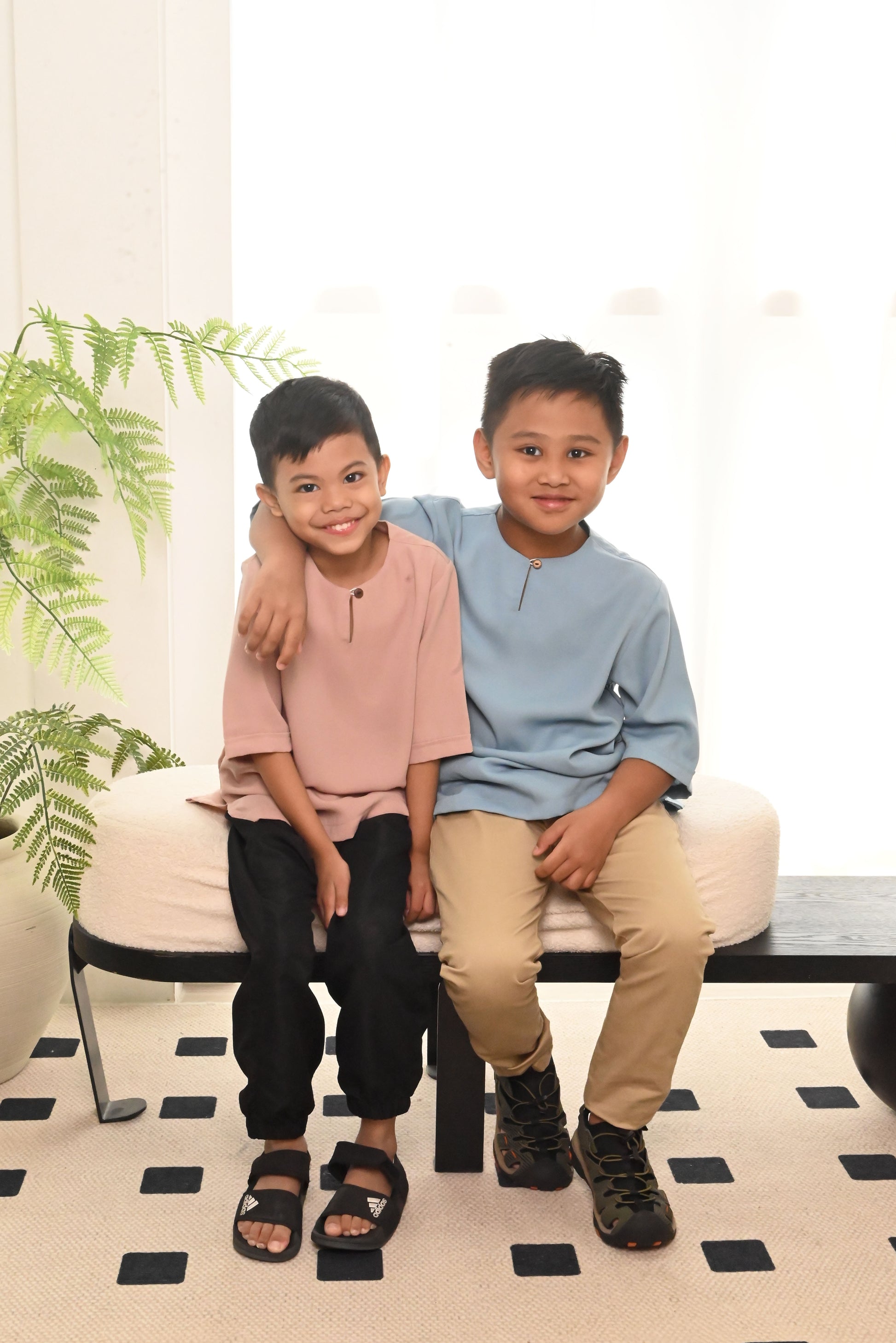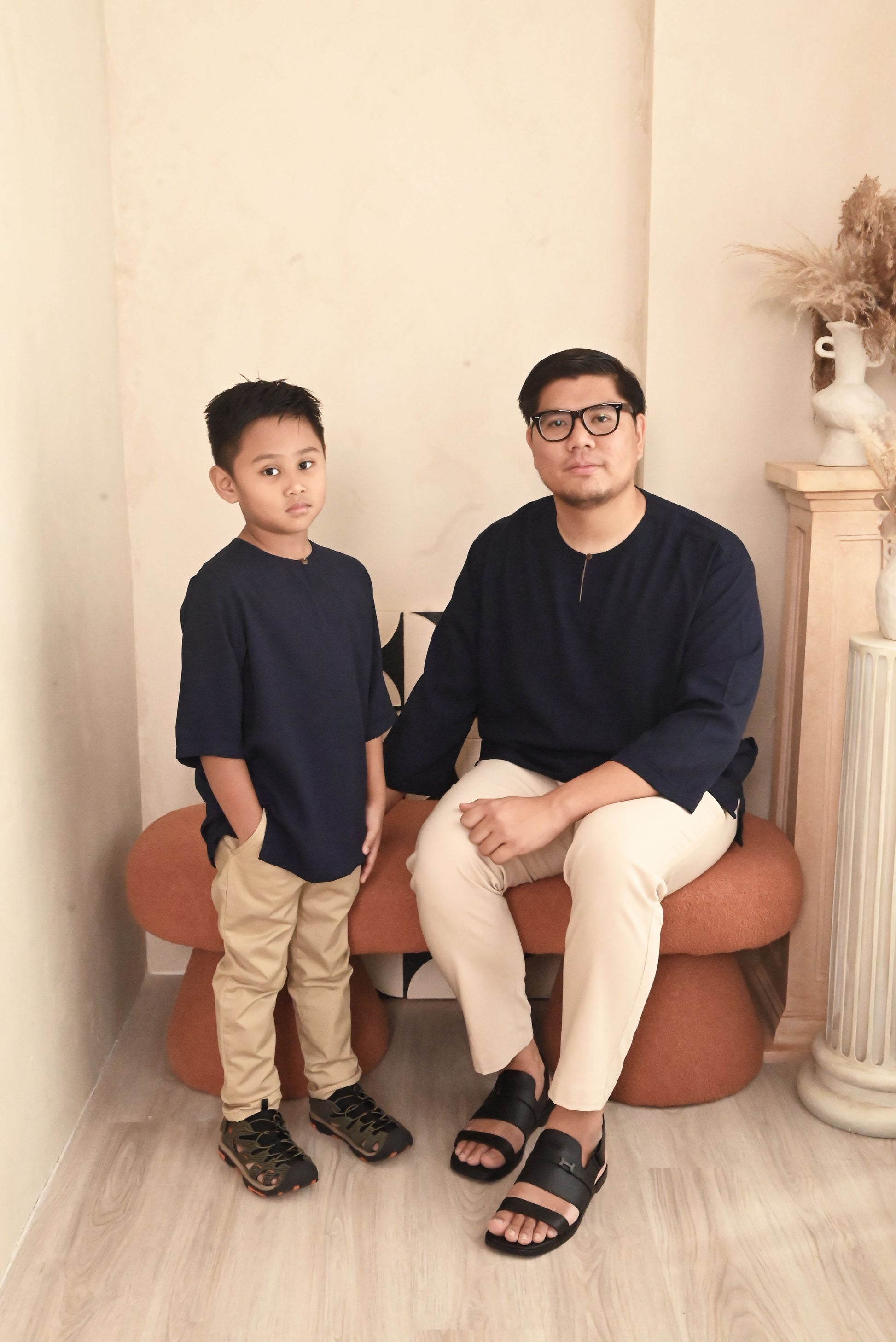 Modern Baju Melayu with 3/4 sleeves and simple wood button for that simple yet comfortable look. Pocket on both sides of top.