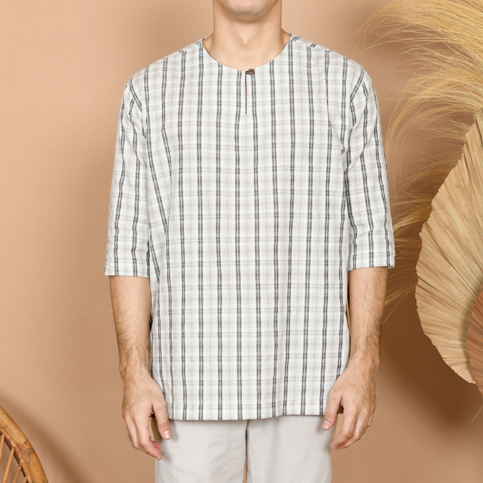 Modern Baju Kurung set with 3/4 sleeves and stripes design for that casual look. Pockets on both side of top & pants. Measurements at last picture.