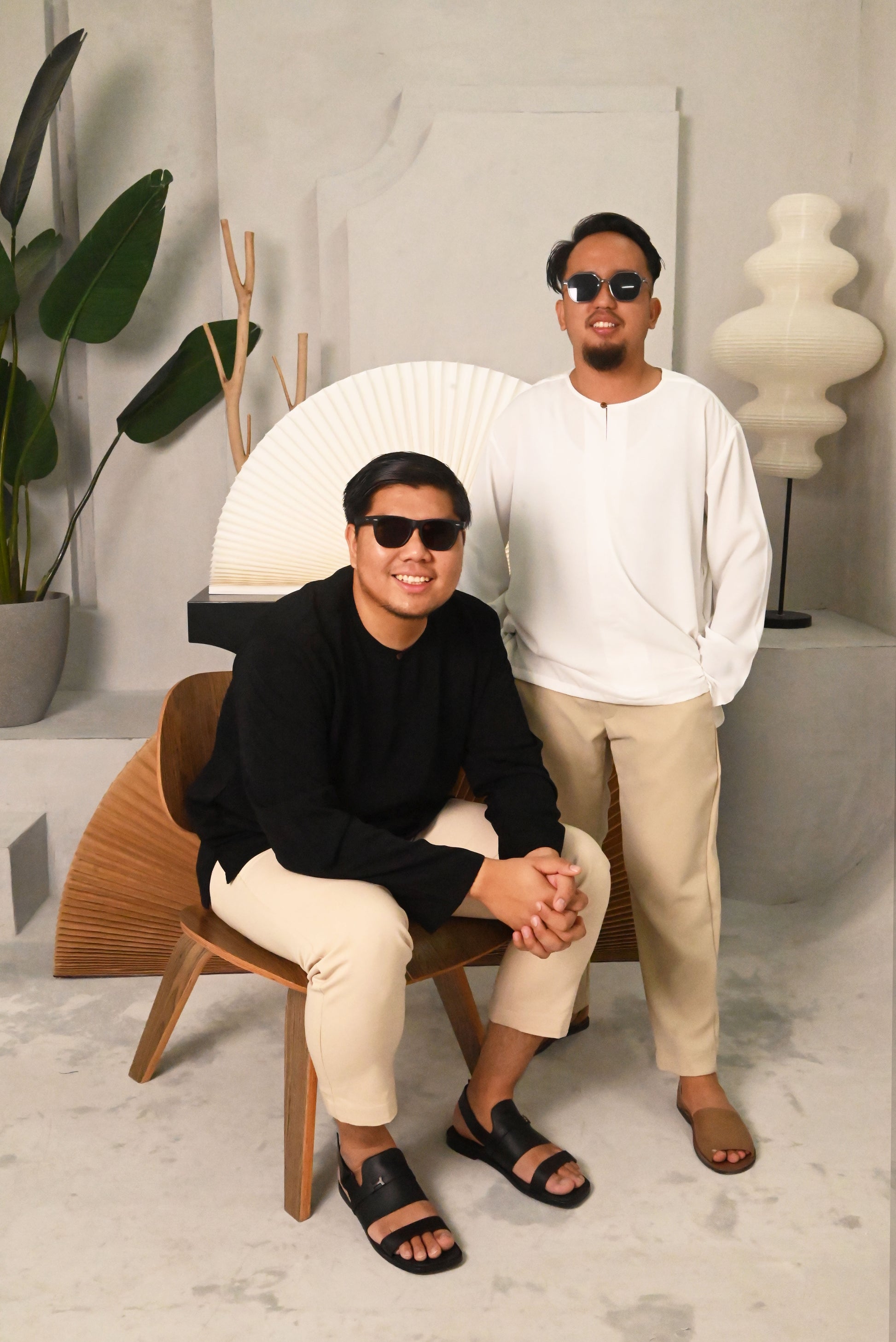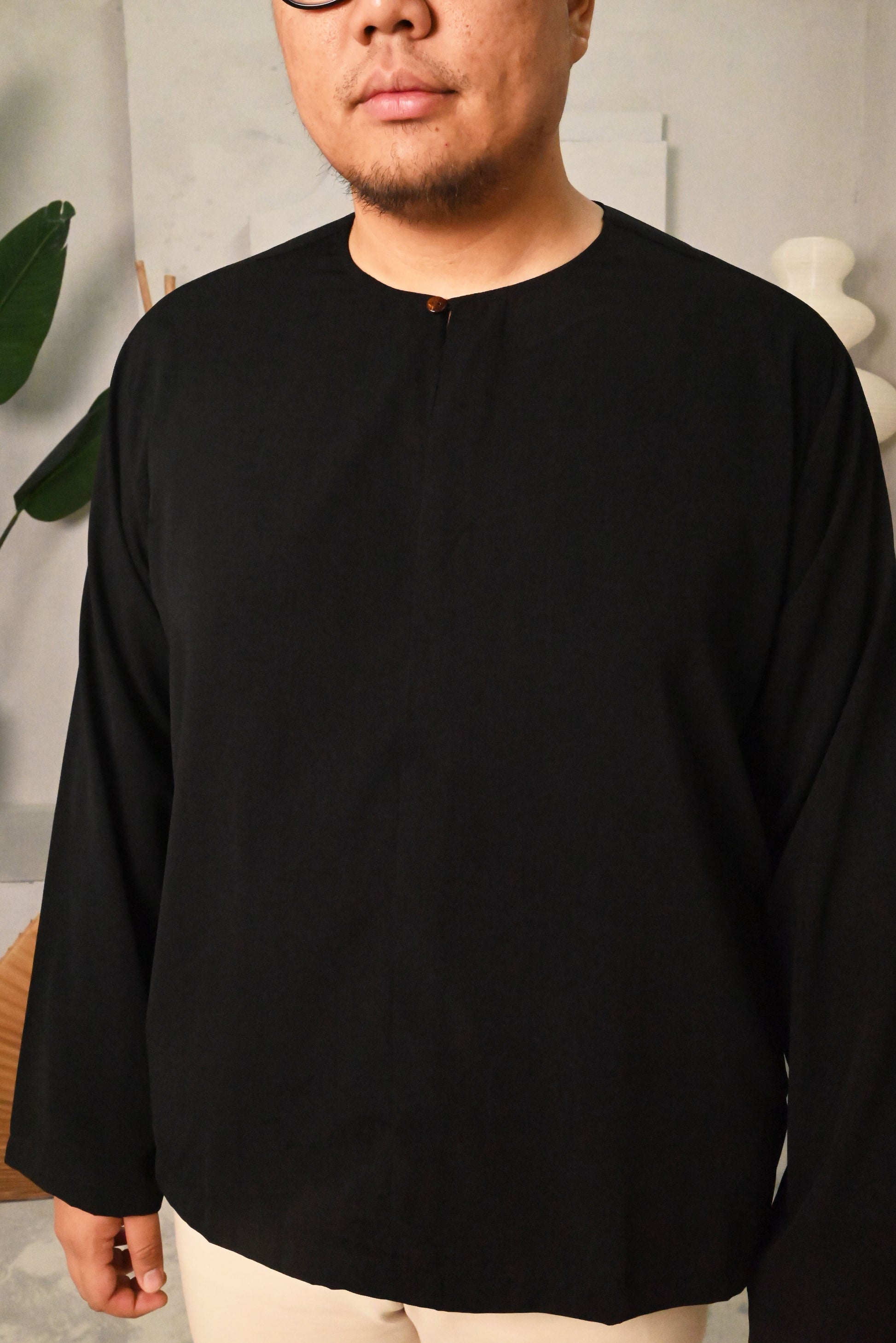 Modern Baju Melayu with a line design at the front and simple wood button for that simple yet comfortable look. Pocket on both sides of top.