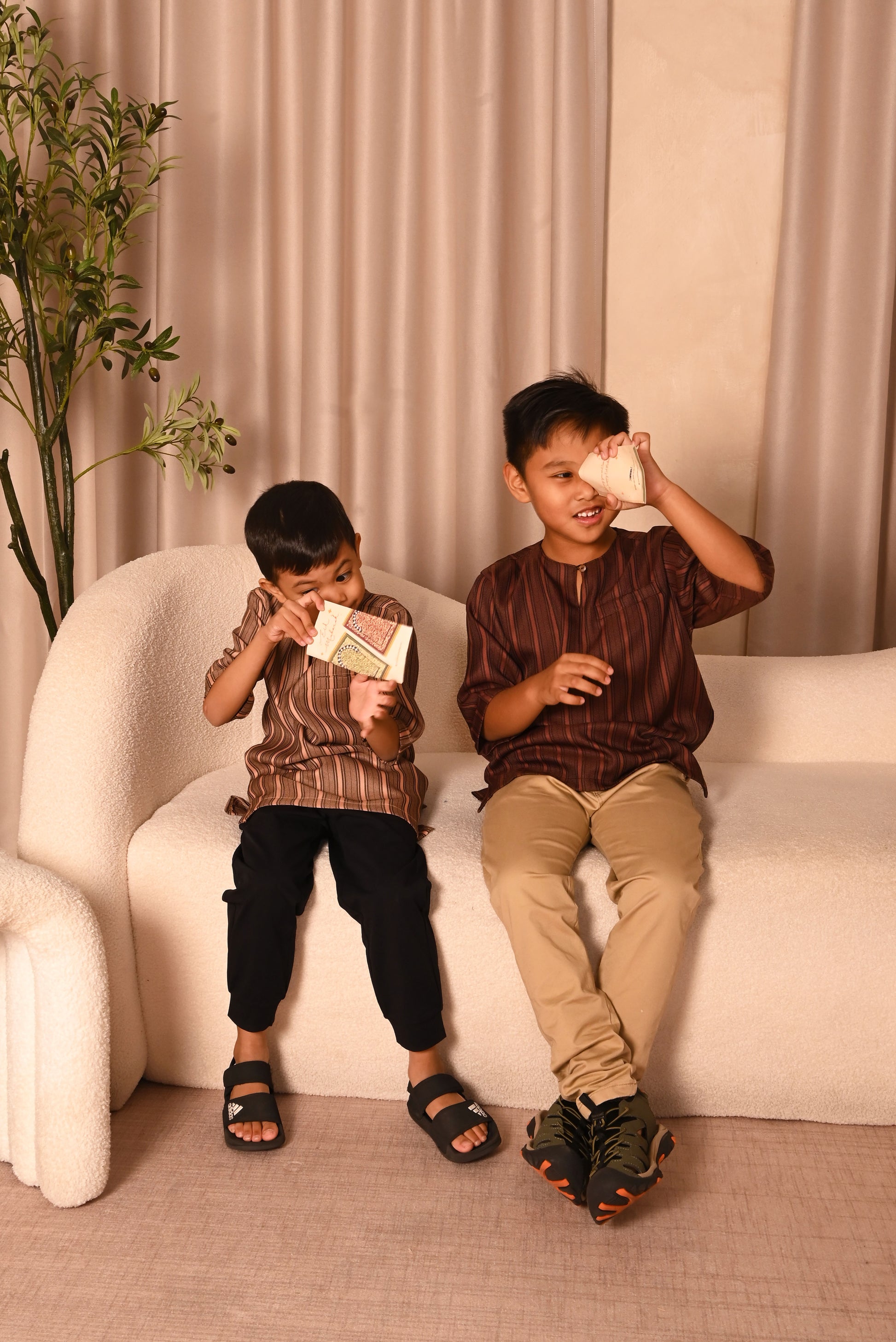 Modern Baju Melayu with 3/4 sleeves and stripes design for that modern look. Pocket on top left side and both sides of top.
